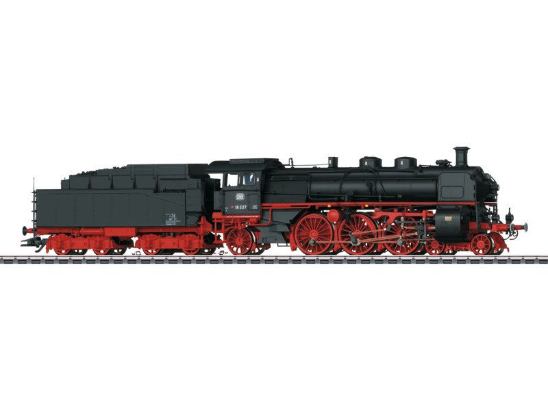 Vorbild: Schnellzug-Dampflokomotive Baureihe 18.5 der Deutschen Bundesbahn (DB), mit Schlepptender 2´2´T31,7. Mit kurzen Wagner-Windleitblechen, geradem Führerhaus, Reichsbahn-Lampen unten, DB-Reflexglaslampen oben und Puffertellerwarnanstrich. Betriebsnummer 18 537. Betriebszustand um 1958/59.